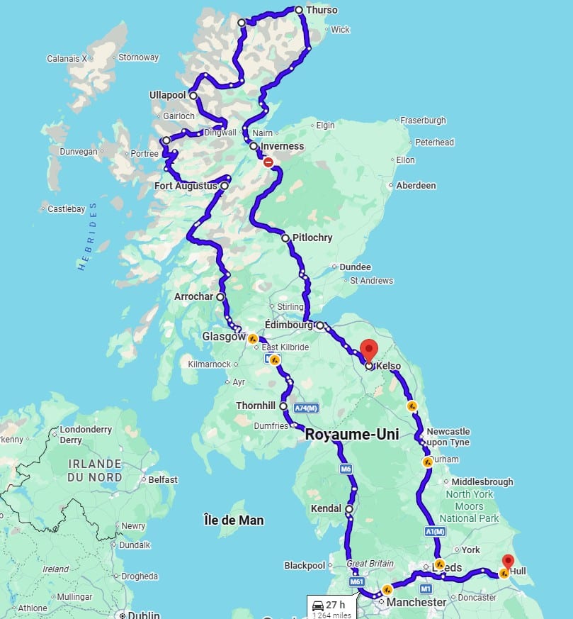 08H30 (Heure Locale) : Arrivée à Hull le matin. Une longue étape vous mènera à Kelso.